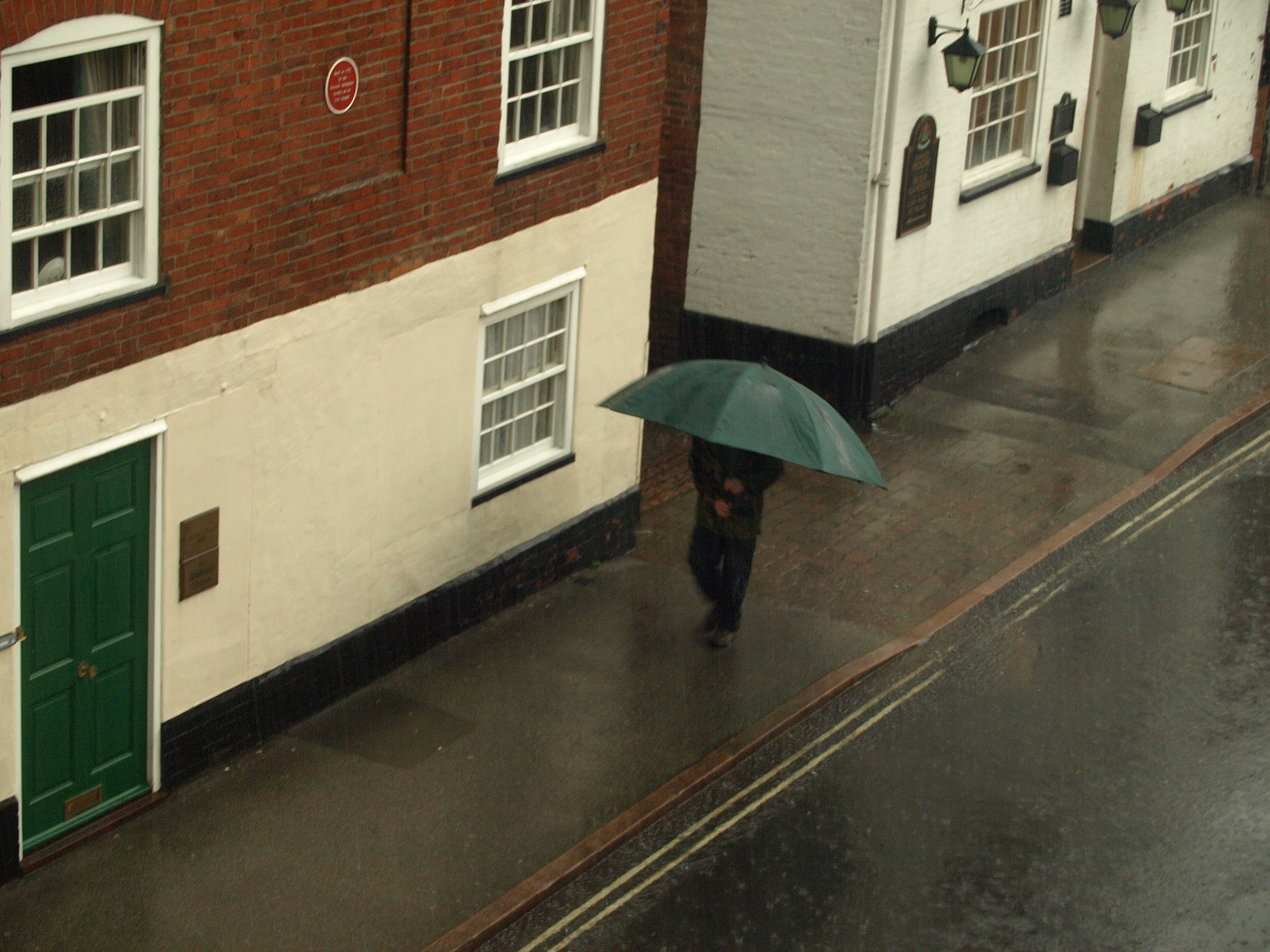 Secondly the other week we had rain that looked like a monsoon, almost as dense as fog, waves of water were flowing off the tops of roofs across the road, the road outside itself became a river, water erupted from drain covers. One driver of an expensive saloon car *cough*a BMW*cough* clearly felt that a couple of inches of water was too risky and reversed back then drove down the pavement instead while others ploughed through regardless spraying people and buildings with torrents of water. One especially impressive young man managed to leap completely over the large bow-wave created by one passing car as it rolled along the pavement. As usual I watched the rain and lightning, listened to the thunder.
